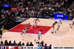 格雷森·阿伦突破落地踩到祖巴茨的脚 自己崴脚了&有点一瘸一拐