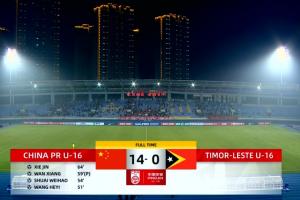 体育资讯11月24日讯 U17亚洲杯预选赛A组第二轮,中国14-0狂胜东帝汶,赛后小组积分榜更新。